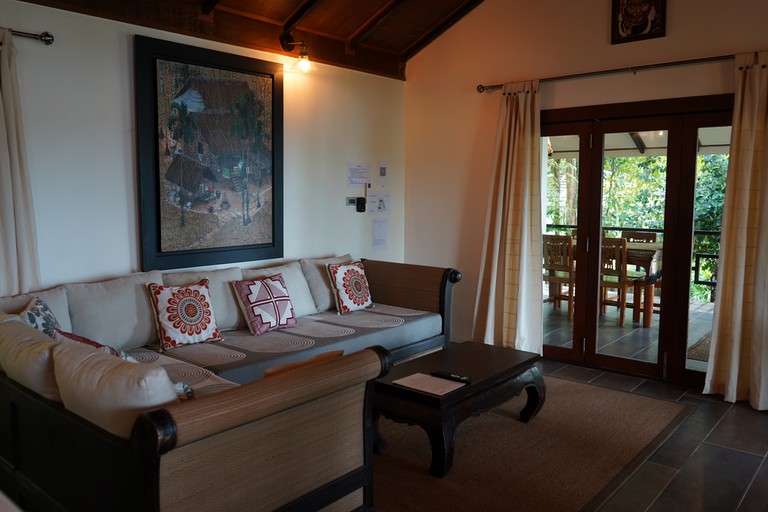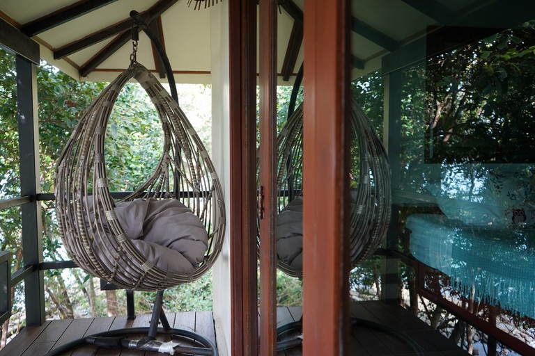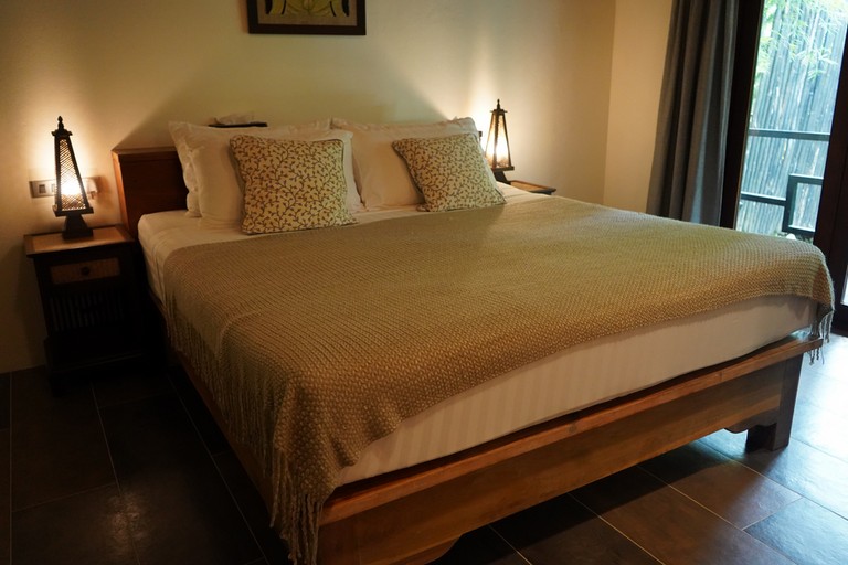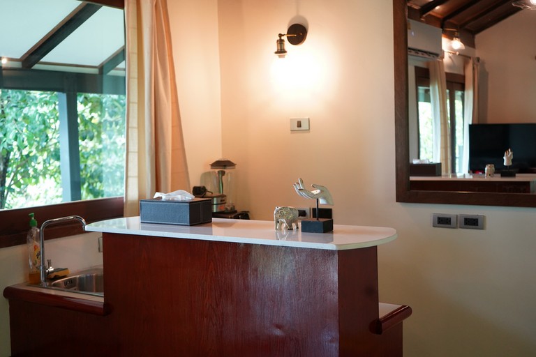 Overlooking the sea, surrounded by high trees, our 150 sqm villa offers an amazing sunset view on the coral bay. Tastily furnished with traditional Thai furniture, its large sunny living room, its equipped kitchen, its master bedroom with dressing and its large terrace all offer a breathtaking view on the deep blue. The villa has two bedrooms and can accommodate a maximum of 4 adults and 2 children.
